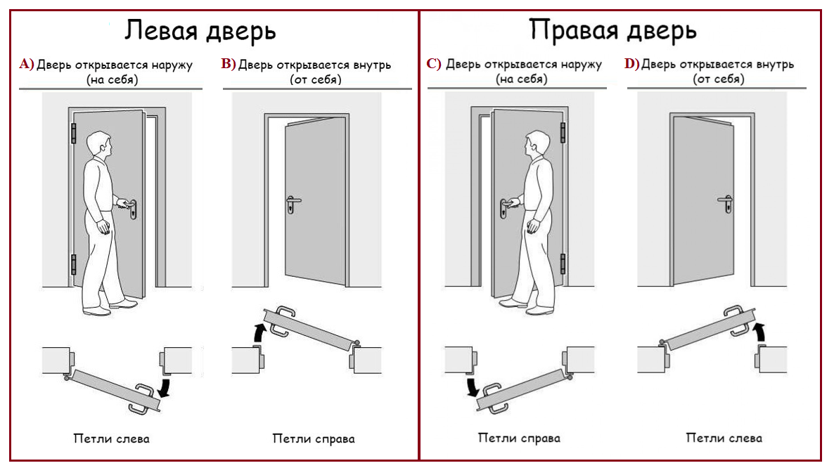 Схема №1. Дверь с наличником открывание наружу. Установка и вид с наружной стороны